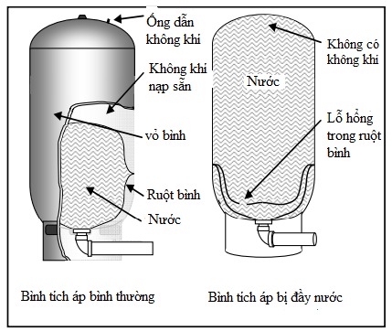 - Khi máy bơm hoạt động thấp, kém hơn so với tiêu chuẩn thì bình áp lực sẽ tự động bổ sung rò rỉ và lưu lượng của chất lỏng chạy qua.
